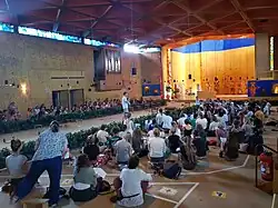 Von oben betrachtet, erinnert der Grundriss der Versöhnungskirche an die Form eines Flugzeugträgers. Die Pläne stammen von Frère Denis Aubert, einem Bruder der Communauté. Auf Bänke und Stühle wurde weitgehend verzichtet; man sitzt auf Meditationshockern oder dem Boden.