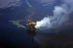 Das Gesamtbild der Ozeanverschmutzung bietet jedoch zusätzlich auch noch andere Facetten: Zusätzlich zu dem Eintrag von Schadstoffen und Müll durch ins Meer mündende, natürliche und künstliche Zuflüsse ist der marine Schiffsverkehr ebenfalls ein großer Belastungsfaktor. Nach wie vor ist es (in einigen Teilen der Welt) nicht unüblich, nicht mehr benötigte Abfälle in Gestalt von illegaler Verklappung oder in Form von Versenkung von Schiffen in den Weltmeeren (anstelle von ordentlicher Verschrottung zu Lande) loszuwerden. Darüber hinaus haben Havarien, explodierende Bohrinseln oder marode Pipelines zur marinen Ölverschmutzungen geführt. Das größte derartige Ereignis war die Ölpest am Persischen Golf 1991, bei der knapp eine Milliarde Liter Öl (eine Million Tonnen) unkontrolliert ins Meer flossen.[3]
