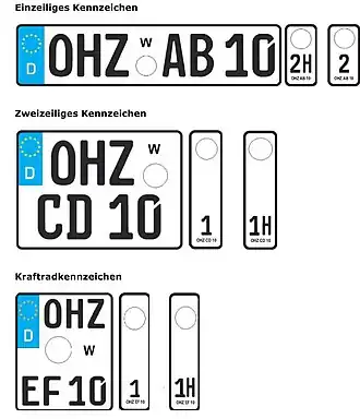 Die heutigen Kfz-Kennzeichen in Deutschland sind als Euro-Kennzeichen ausgeführt. Sie bestehen aus zwei Teilen: