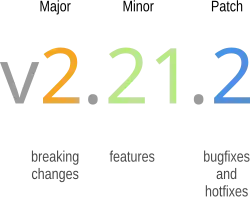 Ein Versuch, die Software-Versionierung zu standardisieren, ist Semantic Versioning (SemVer),[1] d. h. der Aufbau der Versionsnummern wird mit Bedeutung versehen. Dabei besteht die Version im Wesentlichen aus drei (durch je einen Punkt getrennten) natürlichen Zahlen (einschließlich der Null). In der folgenden Liste wird die Bedeutung einer Inkrementierung der jeweiligen Versionsteile beschrieben: