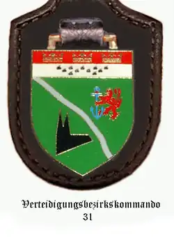 Als „Abzeichen“ wurde daher unpräzise manchmal das interne Verbandsabzeichen des Stabes und der Stabskompanie „pars pro toto“ für das gesamte Verteidigungsbezirkskommando genutzt. Es zeigte bis 2001 im Wesentlichen als Hinweis auf den Stationierungsraum als Figuren den Kölner Dom vor dem Umriss des Regierungsbezirks Köln. Nach Eingliederung des Verteidigungsbezirkskommandos 32 wurde das interne Verbandsabzeichen geändert. Es zeigte nun neben dem Dom den stilisierten Rhein ähnlich wie im Wappen Nordrhein-Westfalens und den Bergischen Löwen ähnlich wie im Düsseldorfer Wappen. Im Schildhaupt werden die drei aus dem Kölner Wappen bekannten Kronen und die elf Tränen abgebildet.
