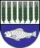 Blasonierung: „Geteilt Silber über Blau; oben 7 steigende grüne Ähren balkenweise, unten ein silberner Fisch.“
