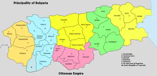 Mit dem Fürstentum Bulgarien kamen neue Verwaltungseinheiten, die es zuvor (Osmanisches Reich) nicht gegeben hatte.