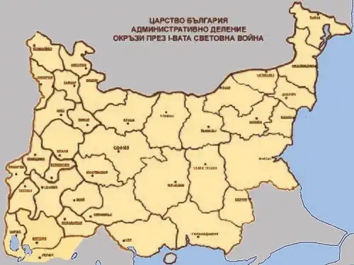 Nachdem sich Bulgarien und Ostrumelien vereinigten, bestand das System aus Okruge weiter, nur mit der Einschließung Ostrumeliens, wie die Karte zeigt. Es gab jedoch kleinere Änderung, die hauptsächlich einzelne Dörfer betrafen.[6]