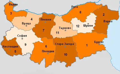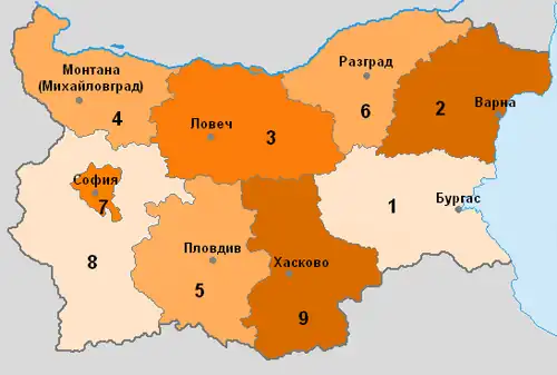 Die landesweiten Wahlkreise sind bis auf Sofia und Plowdiw identisch mit den jeweiligen Oblasten.