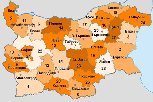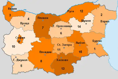 - ↑ a b c d e f g h i j k l m n o Administrativ-territorialer Aufbau Bulgariens (Teil Drei). RDP, abgerufen am 21. Juli 2021.