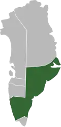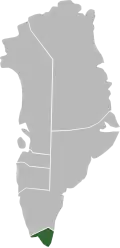 Kommune Kujalleq | seit 2009 | 6.292 | Distrikt Qaqortoq (3127) Distrikt Narsaq (1591) Distrikt Nanortalik (1574) | |