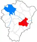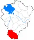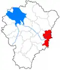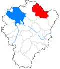 - ↑ a b c Stadt gehört nicht zum Rajon, sondern bildet eigenständigen Stadtkreis; Einwohnerzahl der Stadt nicht bei der Berechnung der Bevölkerungsdichte berücksichtigt