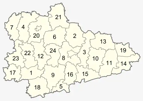 - ↑ Nummer des Rajons in der Karte (in alphabetischer Reihenfolge der Rajonnamen im Russischen)
