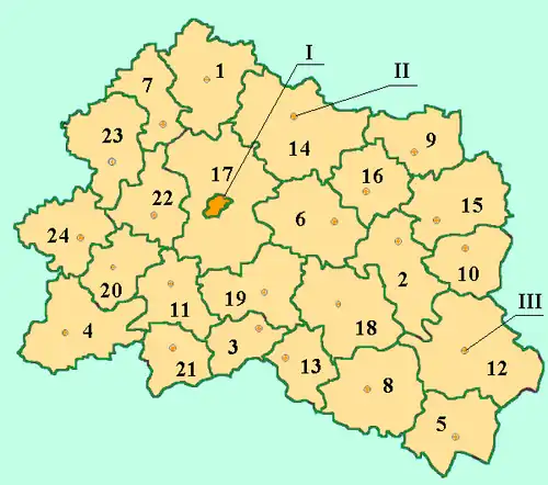 - ↑ Nummer des Rajons in der Karte (in alphabetischer Reihenfolge der Namen im Russischen)