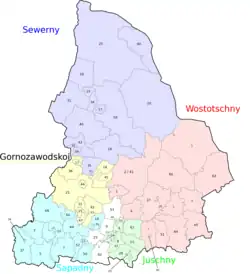 - ↑ Nummer des Stadtkreises bzw. des Rajons in alphabetischer Reihenfolge der Namen in russischer Sprache