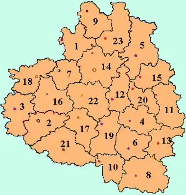 - ↑ Nummer des Rajons in der Karte (in alphabetischer Reihenfolge der Namen im Russischen)