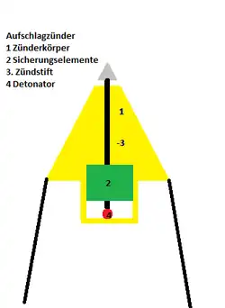Für massive panzerbrechende Geschosse werden Bodenzünder eingesetzt, die als Aufschlagzünder mit Verzögerung wirken.[2]