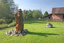 - Biokorridor auf dem Gebiet des ehemaligen Teiches Kuchyňka im Ortszentrum.[4] Auf dem Gelände wurden der Torso einer 450-jährigen Eiche sowie die vom Holzschnitzer Josef Cyprián aus Podhradí geschaffenen Skulpturen "Wassermann Cyprián" und "Frosch" aufgestellt.