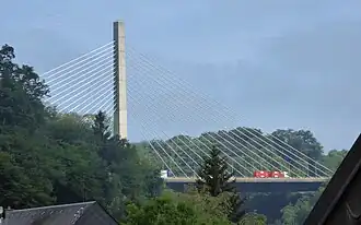 Sie wurde 1993 erbaut, ist 260 Meter lang, 27 Meter breit und führt in 40 Meter Höhe über die Alzette. Der Pylon, an dem die Seile befestigt sind, hat eine Gesamthöhe von 106,25 Metern. Er ist damit eines der höchsten Bauwerke in Luxemburg.