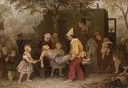 • Straßenpartie mit Mann, Kindern und Hunden, 1883