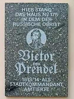 Nach der Völkerschlacht ernannte Zar Alexander den Obristen von Prendel zum Stadtkommandanten von Leipzig. In seiner einjährigen Tätigkeit hier führte er die Stadt aus dem militärischen Chaos zurück zum (fast) normalen zivilen Leben. Ab 1816 organisierte er die Rückführung russischer Truppen aus dem Raum Altenburg und war Direktor der Lazarette in Deutschland.