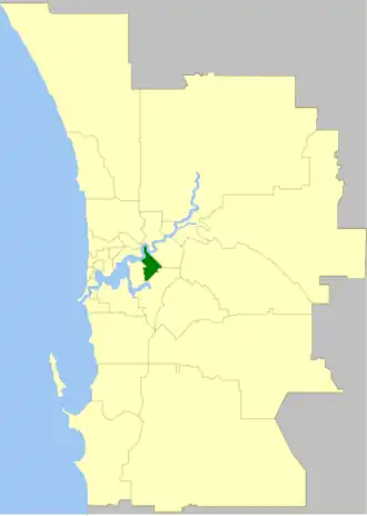 Victoria Park südöstlich des Stadtzentrums von Perth auf der anderen Seite des Swan River. Der Sitz des Town Councils befindet sich im Stadtteil Victoria Park, wo etwa 8750 Einwohner leben (2016).[2]