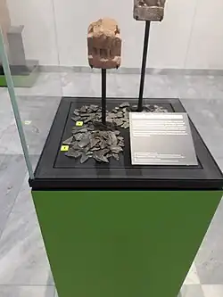 Bei der Treppe wurden Fragmente kleinformatiger Weihreliefs gefunden, darunter Darstellungen der Pferdegöttin Epona. In der Verfüllung des westlichen Beckens kam eine Münze (Antoninian) des Kaisers Tacitus (275–276 n. Chr.) zum Vorschein. Organische Funde aus dem Bereich konnten mithilfe der C14-Datierung in das späte 3. Jahrhundert eingeordnet werden. Die Verfüllung der Becken erfolgte wohl nach dem Limesfall, möglicherweise um 277–278 n. Chr., als Kaiser Probus die Germanen hinter den Neckar zurückdrängte.[7]