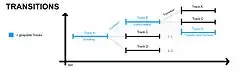 Bei dieser Methode schreibt ein Komponist unterschiedliche Musikstücke und komponiert zusätzlich noch Übergangsstücke (transition pieces) für jeden möglichen Sprung von einem Musikstück zu einem anderen. Der Vorteil dieser Methode liegt darin, flüssig von einem Musikstück zu einem anderen, von einer Emotion zu einer anderen springen zu können. Das Schreiben von Übergangsstücken ist jedoch wiederum zeitraubend, da für jeden Track neue „Transitions“ komponiert werden müssen.