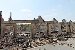 In der Nacht zum 22. April 2015 brannte sie aus zunächst unbekannter Ursache bis auf die Grundmauern nieder.[6] Einen Tag später gestanden drei Jugendliche die vorsätzliche Brandstiftung, nachdem bei einem der Täter ein Handyvideo des Brandes aufgetaucht war.[7] Im November 2015 wurde gegen die drei Jugendlichen von der Staatsanwaltschaft Anklage erhoben. Sie schätzt den entstandenen Schaden auf eine Million Euro. Den Ermittlungen zufolge wurden 13 umliegende Objekte – Gebäude, Fahrzeuge und anderes – durch das Feuer beschädigt.[8] Die drei Täter im Alter von 15, 18 und 20 Jahren haben die Tat gestanden und wurden im Oktober 2017 zu Bewährungsstrafen verurteilt.[9]