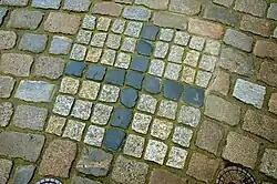 Das Kreuz im Pflaster am Hanns-Lilje-Platz vor der Marktkirche markiert den Standort für den sogenannten Vierkirchenblick