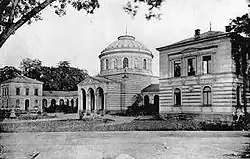 In der ersten Phase wurden nach Durms Plänen ein Trakt, in dem Wannen- und Dampfbäder angeboten wurden, und die Kurabteilung errichtet. Den Mittelpunkt bildete eine Rotunde. Diese wurde mit acht Zinkgussfiguren in Nischen zwischen den Fenstern geschmückt, von denen je zwei genau gleich sind. Die Figuren scheinen antike Vorbilder zu haben. Eine weitere Figur stand in einer Grünanlage vor der Rotunde. Sie befindet sich heute nicht mehr dort. Auch die Büsten des Großherzogs Friedrich I. und seiner Gemahlin Luise, die einst in der Säulenhalle standen, fehlen heute. Der Giebel über dem Eingang wurde mit einem Gemälde von Rudolf Gleichauf geschmückt, das Hygieia in Begleitung zeigte. Für das Innere der Rotunde schuf Wilhelm Klose vier Landschaftsgemälde, die über den Türen zu sehen waren.