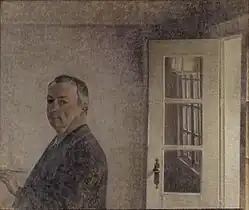 Vilhelm Hammershøis Bilder zeichnen sich durch Stille und Melancholie aus.[4] Die Interieur- und Landschaftsgemälde wirken kahl und puristisch, die Städte auf den in Kopenhagen, London und Rom entstandenen Architekturdarstellungen sind verlassen und düster. Die meist in gedeckten Grau-, Weiß-, Grün- und Blautönen gehaltenen Werke erinnern an die mittelalterliche Grisaille-Malerei. Auch sein Pastell-Selbstporträt aus der Zeit um 1890 (in Privatbesitz) wird durch die Grautöne bestimmt.