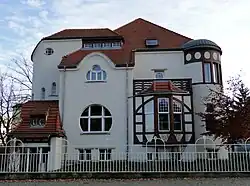 Das zweigeschossige Gebäude besitzt einen „unregelmäßige[n] Grund- und Aufriß“[2] mit einer asymmetrisch gestalteten Straßenfront. Unregelmäßig sind auch Größe und Anordnung der Fenster, die verschiedene Arten der Rundung aufweisen. Obwohl ein Bau des Jugendstils, besitzt die Villa kaum jugendstil-typischen ornamentalen Schmuck. Im Inneren ist die große Hallendiele auffällig. Einzigartig für die Entstehungszeit war jedoch vor allem die ins Souterrain integrierte Garage.[3]