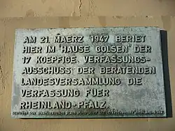 Ursprünglich hieß das Gebäude „Weingut Golsen“; bis in die Gegenwart wird es als Weingut betrieben. Am 21. März 1947 tagte der Verfassungsausschuss der Beratenden Landesversammlung des rund einem Jahr zuvor gegründeten Bundeslandes Rheinland-Pfalz im Haus.[1]
