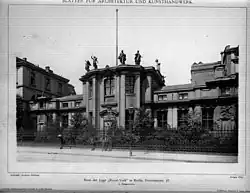 Im Zweiten Weltkrieg brannte das Innere infolge eines alliierten Bombenangriffs im November 1943 aus. Erhalten blieben die Außenmauern mit dem gesamten Fassadenschmuck Schlüters. Im August 1945 standen nur noch die Gartenfassade und die Mauern des Saals.[6] Die vor der Sprengung der Ruine im Jahre 1950 vom Dach des Mittelbaus abgenommenen vier Figuren sind seit 1953 in der Kamekehalle im Bode-Museum ausgestellt.[7] Einige andere plastische Überreste kamen ins Märkische Museum.[8] Das Grundstück der Villa ist in die Fläche des Presse- und Informationsamtes der Bundesregierung integriert und überbaut.[9]
