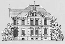 Die zweigeschossige, mit der Einfriedung unter Denkmalschutz[1] stehende Mietvilla liegt auf einem Eckgrundstück zur Schillerstraße. Sie hat einen flachen Sockel und ein weit überkragendes Walmdach.