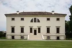 Die Villa liegt an der breiten Seite eines rechteckigen, auf allen Seiten von einem Säulengang umgebenen Hofs. Sie weist mit ihrer Eingangsseite zum Fluss Guà, zur Bauzeit eine schiffbare Wasserstraße. Die Fassade der Villa ist in drei Teile gegliedert: Zwei seitliche Türme flankieren eine Loggia, in der sich drei Arkadenbögen öffnen. Die Zweiturmvilla war ein üblicher Bautyp im Veneto. Hier erheben sich die Türme allerdings kaum über den Baukörper, sie sind auch nicht nach vorne gezogen und wirken gegenüber dem Mittelteil nicht dominierend. Die drei Bögen in der Loggia sind rustiziert. Der obere Abschluss ist ein Triglyphen-Fries, direkt darüber schließt der über die ganze Breite der Loggia verlaufende Dreiecksgiebel an. Das schlichte Giebelfeld wird durch das Familienwappen der Bauherren geschmückt. Eine einfache Treppenanlage, in Palladios Plan in den „Vier Büchern über die Architektur“ über die ganze Breite der Loggia eingezeichnet, führt Richtung Fluss hinab. Die Fassade zum Hof ist einfacher ausgeführt: sie ist glatt verputzt und nur durch die Fenster gegliedert. Die Mittelachse wird durch drei rechteckige Fenster und ein dreiteiliges Thermenfenster betont. In den „Vier Büchern über die Architektur“ ist die Hoffassade mit einer vorgelagerten kleinen Halle abgebildet, welche die Gebäudeseiten gegenüber der Mittelachse zurücktreten lässt.