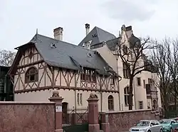 Das Gebäude mit einer Wohnfläche von 711 m², das sich über einer Stützmauer erhebt, umfasst ein Kellergeschoss, zwei Vollgeschosse und ein ausgebautes Dachgeschoss. Im Außenbereich kontrastieren helle Putzflächen mit Gliederungen aus rotem Sandstein. In seiner unregelmäßig-malerischen Gesamterscheinung und mit seinem reichen Dekor entspricht der Bau dem Merkmal der deutschen Renaissance-Architektur, Baukörper zu staffeln, um so eine gewünschte Vielgestaltigkeit in Aufbau und Gliederung zu erreichen.
