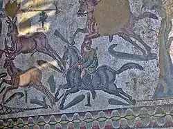 Ritter bei der Hirschjagd, Mosaik aus der „kleinen Jagd“