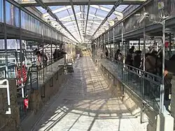 Der erste, hufeisenförmige Hof war von Marmorsäulen mit ionischen Kapitellen umgeben, in der Mitte befinden sich die Reste eines quadratischen Springbrunnens. Von der ursprünglichen Gestaltung des Fußbodens findet sich am nördlichen Rand noch ein Rest eines zweifarbigen Mosaiks in Schuppenmusterung. Westlich des Hofes sind noch der tiefer gelegene Pferdestall sowie eine halbkreisförmige Latrine zu erkennen.