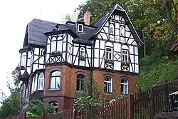 Das am Eichrodter Weg 1 gelegene Gebäude wurde 1895 vollendet. In den 1920er Jahren wurde die Villa nach mehreren Besitzerwechseln zum Mehrfamilienhaus umgebaut, später wurde 1960 ein ursprünglich vorhandener Turm zurückgebaut. Im Zweiten Weltkrieg wurde das Dach beschädigt. Die drei Wohnungen des Hauses wurden zu Zeiten der DDR geteilt, so dass das Gebäude über sechs Wohneinheiten verfügte. Genehmigungen für größere Sanierungsarbeiten erteilten die Behörden dem Eigentümer nicht, so dass am Gebäude Schäden entstanden, unter anderem Hausschwamm.
