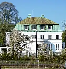 Die Villa liegt in einem tiefen Gartengrundstück. Das Gebäude ist zweigeschossig. Die Geschosse sind durch ein breites Gurtgesims voneinander getrennt. Besonders auffällig ist das kupfergedeckte Mansarddach. Die Straßenseite im Süden weist einen markanten halbrunden Vorbau mit Balkon auf. Der Haupteingang mit einem monumentalen Portikus und Freitreppe liegt an der Ostseite.