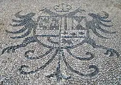 Das Wappen zeigt die Besitzungen von Karl I., der als Karl V. auch deutscher Kaiser war.[4] Er war der erste Monarch, der durch Erbschaften vier europäische Monarchien erhalten hatte und in seiner Person die Krone von Kastilien, Aragón, Neapel und Sizilien aus mütterlichem Erbe, sowie die Burgundischen Niederlande und die habsburgischen Besitzungen und die Anwartschaft auf die Kaiserwürde. Viele dieser Besitzungen sind in seinem Siegel dargestellt.