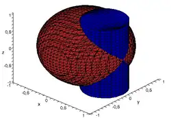 Die Schnittmenge der Einheitskugel mit dem Vollzylinder