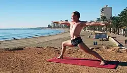 Virabhadrasana (Sanskrit वीरभद्रासन, IAST vīrabhadrāsana), deutsch Stellung des guten Helden, ist eine klassische Übung des Yoga und eine der 84 Hauptübungen des Hatha Yoga. Der Sanskritname bildet sich aus den Wörtern vīra (वीर) „Held“,[1] bhadra (भद्र) „gut, freundlich, gesegnet“[2] und āsana (आसन) „Sitz, Körperhaltung“.[3] Im deutschsprachigen Raum ist die Asana unter dem Namen Krieger bekannt.