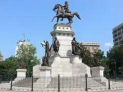 Die umgebende Grünanlage (Capitol Hill) ist Standort mehrerer Denkmäler für Personen und Ereignisse, die den Staat Virginia betreffen. Das markanteste ist wohl das knapp 6,5 m hohe Virginia Washington Monument, ein Reiterstandbild von George Washington, dem wohl bedeutendsten Sohn Virginias. Zu Füßen dieses Denkmals wurde Jefferson Davis als erster und einziger Präsident der Konföderierten Staaten vereidigt.[8]