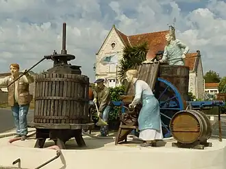 - Auf dem kleinen Platz vor dem Rathaus (mairie) steht eine aus Kunstharz gefertigte Figurengruppe, die eine Kelterszenerie darstellt, wie sie bis ins 20. Jahrhundert hinein noch vielerorts in Europa zu sehen war.