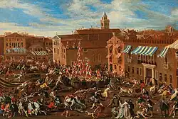 - ↑ Auf dem Campo San Polo wurden noch Jahrhunderte später Stierhatzen aufgeführt.