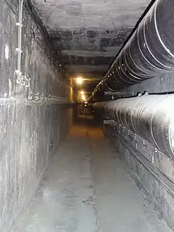 Verbunden werden die Gebäude durch Tunnel, die von dem alten Heizgebäude ausgehen. Bekannt ist, dass die Bewohner während Luftangriffen im Zweiten Weltkrieg in diesen Schächten Schutz suchten.