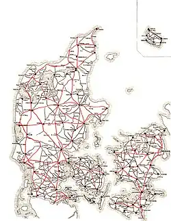 Auf den dänischen Inseln Seeland, Falster und Lolland wurde vergleichbar zügig ein Eisenbahnnetz mit Verbindung nach Kopenhagen installiert, mit Nykøbing (1872), Nakskov (1874) und Rødby (1874) reichten diese Neubaustrecken überall bis an die Ostsee.