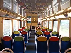 Die 1. Klass-Abteile hatten zwei Sitze auf beiden Seiten des Mittelganges, die 2. Klass-Abteile auf einer Seite zwei, auf der anderen Seite drei Sitze nebeneinander. Im Pariser Vorortsverkehr wurde 1999 die 1. Klasse aufgehoben, wodurch die 1. Klass-Abteile von allen Reisenden benutzt werden konnten.