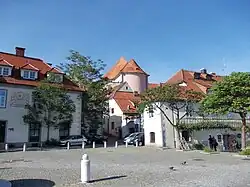 | Vojašniška ulica, Blick zu Splavarski prehod, Aloisiuskirche und zum Alten Weinstock | |