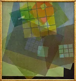 Im Sommer 1921 schickte er seine Töchter nach Prag mit dem Versprechen, dass er bald nachkomme[7]; dies geschah jedoch nach einem Aufenthalt in Prag 1930 endgültig erst im August 1931.[8] a) Mit seinen Ausstellungen 1931, 1933 und 1934 etablierte er sich als ein führender abstrakter Künstler des Landes.