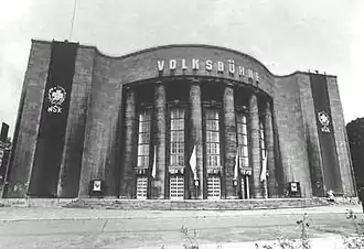 In der Zeit des Nationalsozialismus wurden zwei Spieleinrichtungen, das Theater am Horst-Wessel-Platz und das Theater in der Saarlandstraße unter dem Namen Volksbühne zusammengefasst.[5]